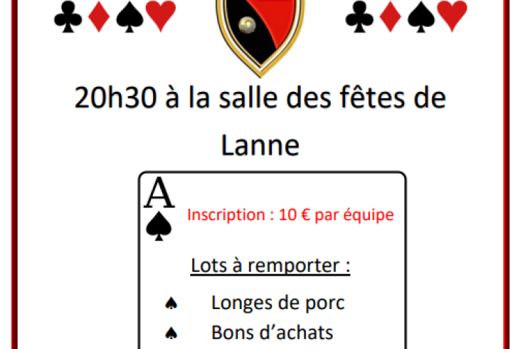 [CLUB] Concours de belote - 22/04/22 BARBOSA Quentin Mercredi 13 avril 2022 Retrouvez nous à la salle des fêtes de Lanne. Le club du Marquisat organise un concours de belote, à partir de 20h30, ce Vendredi 22 Avril 2022. Album photo