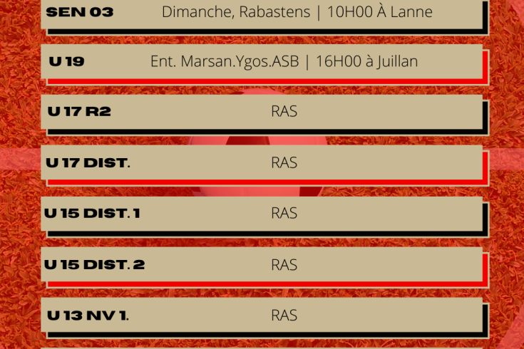 [CLUB] Le planning du week-end - Semaine 09 BARBOSA Quentin Jeudi 3 mars 2022 Retrouvez le planning de ce neuvième week-end de l'année 2022. Nous vous attendons au bord des terrains ce week-end. Album photo